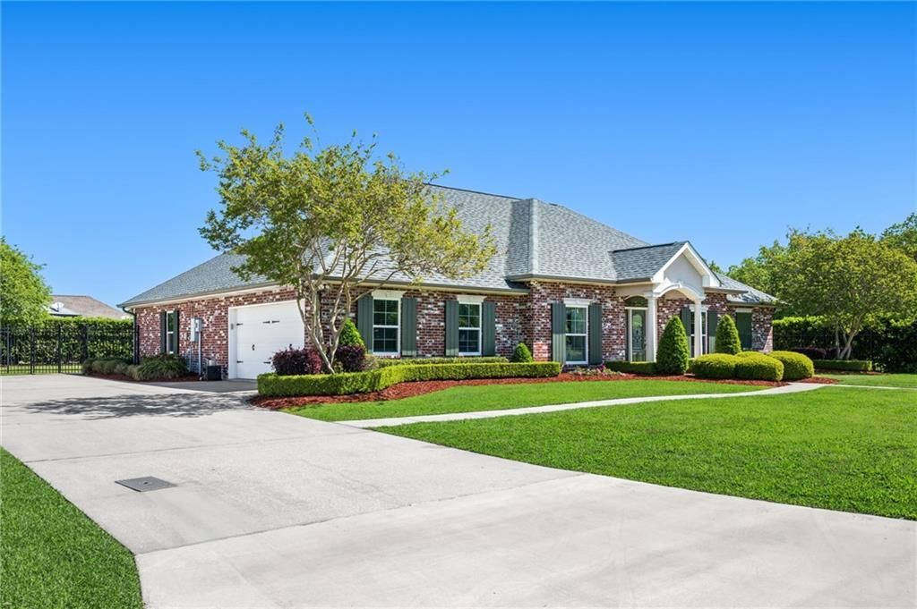 Welcome home to this beautifully maintained brick home nestled in the sought-after gated community of Pleasant Ridge in Belle Chasse. Thoughtfully designed for both everyday comfort and effortless entertaining, this single-story gem offers 4 bedrooms and 3.5 bathrooms ? with a truly special layout that gives your primary suite its own private wing, completely separate from the other bedrooms and living areas. A peaceful retreat to come home to at the end of every day. The heart of the home is a warm and inviting kitchen featuring rich wood cabinetry, a generous pantry, and sleek stainless appliances designed for both the weekend chef and the quick weeknight dinner. Just off the kitchen, a cozy eat-in area keeps everyday meals casual and connected. The formal dining room? Currently reimagined as an elegant music room, a charming and versatile space that speaks to the personality and care this home has been given.Practicality shines throughout. A large mud and laundry room with cabinetry and a utility sink makes managing a busy household a breeze. Benjamin Franklin even makes a special appearance on the whimsical powder room wallpaper! The two-car garage adds even more convenience. And the upgrades here are real ? newer windows bring in beautiful natural light while delivering long-term peace of mind. Step outside onto the covered patio and discover your own private retreat overlooking a fully fenced backyard with lush, generous green space ? the perfect setting for morning coffee, weekend cookouts, or simply unwinding as the evening cools down. Located in X Flood Zone, so you can breathe easy there too. In a gated community, with all the right spaces and a move-in-ready feel ? homes like this don't last. OPEN HOUSE 11am to 12:30pm on Saturday, April 18th- Come see it for yourself.