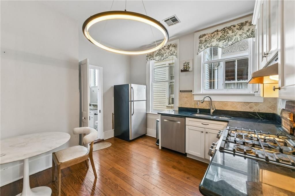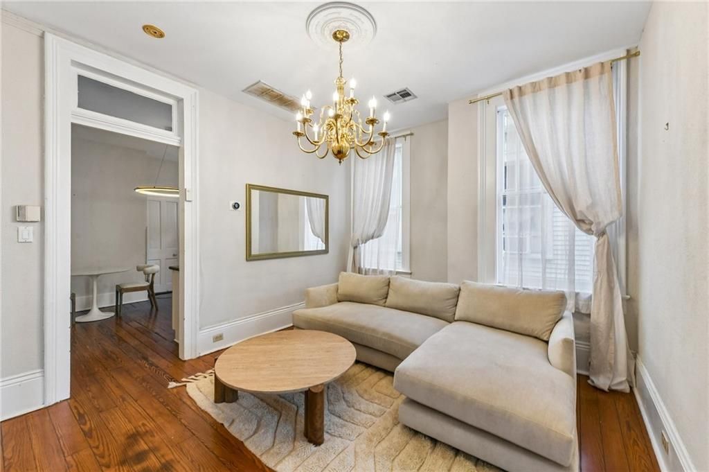 Furnished rental in the Garden District with wonderful balcony just a few doors off of Magazine St. Luxurious primary suite at the quiet rear of the apartment with custom closet system and pretty bathroom. The front bedroom opens to the balcony through floor to ceiling windows. Antique decorative fireplaces in both bedrooms. The eat in kitchen offers stainless steel appliances and gas cooking. Water and wifi included. Small dog or cat considered. Minimum rental term of 6 months.