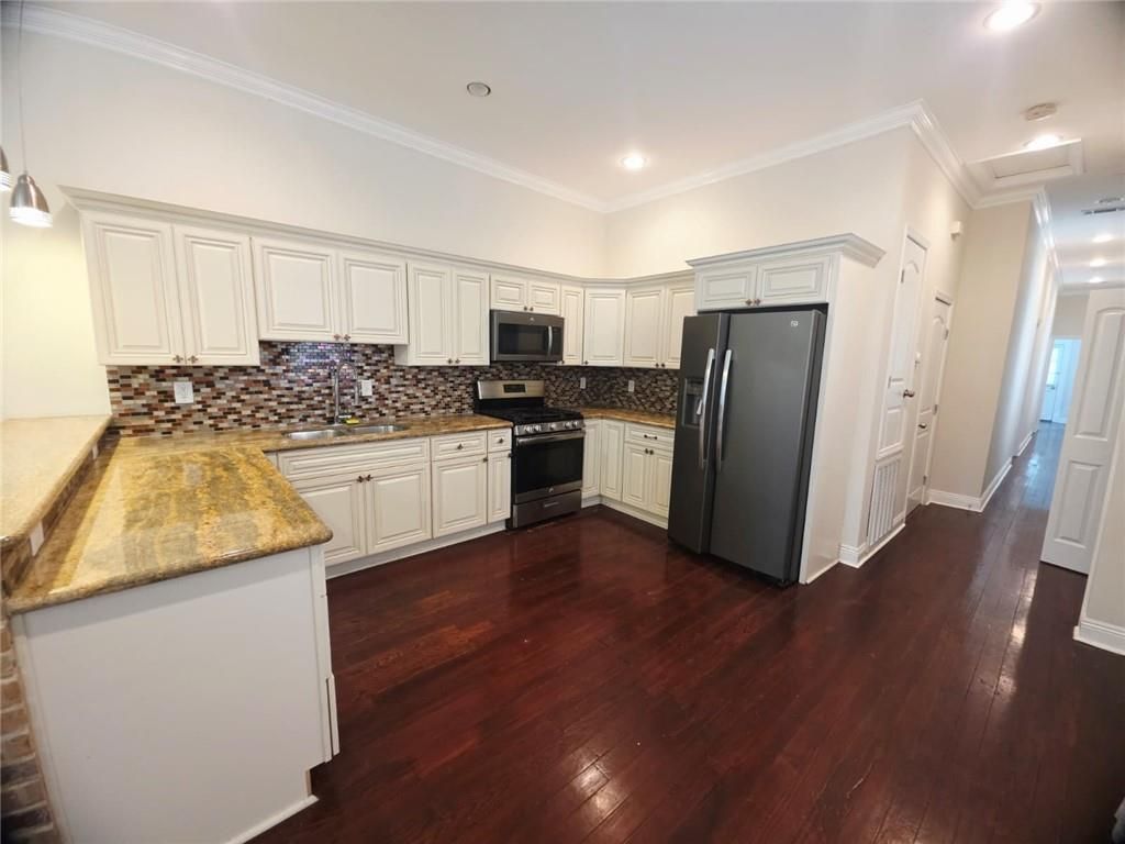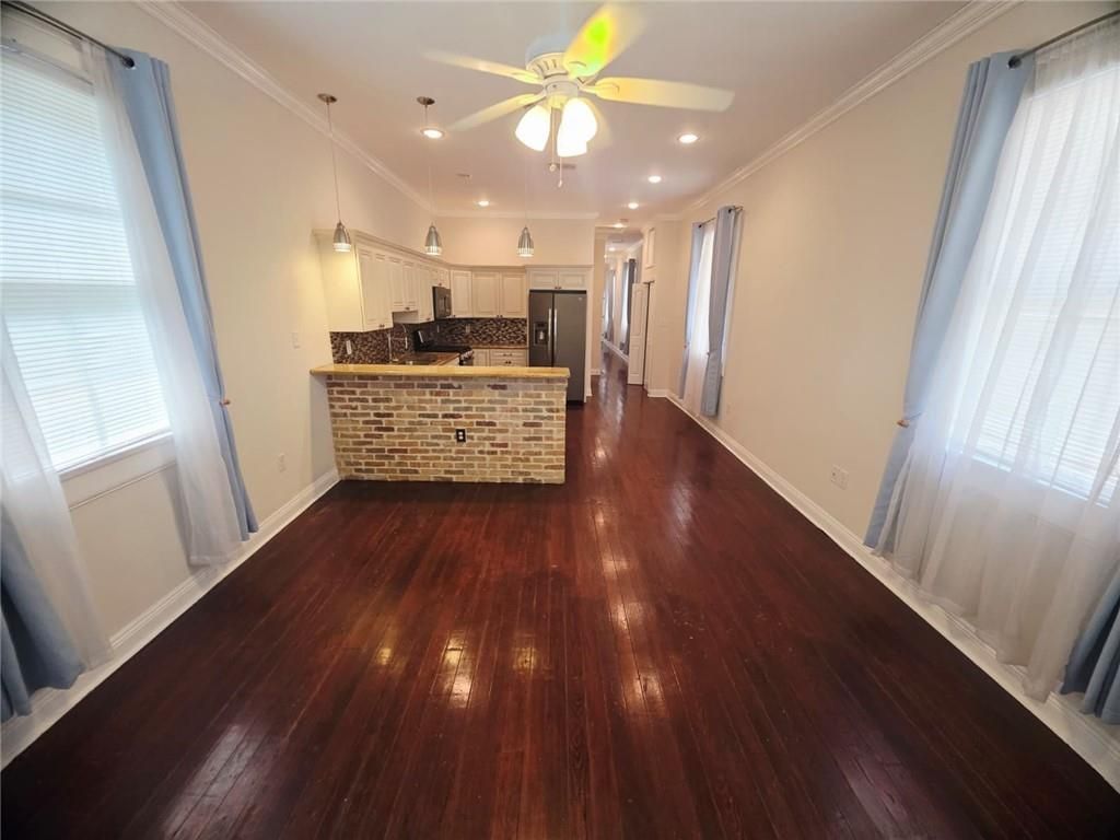 Blending historic charm with thoughtful modern updates, the home features gleaming hardwood floors, stained glass transom windows, exposed brick accent walls, and a classic original fireplace that adds warmth and character throughout. The gourmet kitchen is designed for both function and style, offering a hi-top breakfast bar, granite countertops, a glass mosaic backsplash, and stainless steel appliances for everyday living. One of the standout features of this property is the versatile layout. With two bedrooms that each connect to a bath, the home functions beautifully as dual primary suites for guests, or shared living arrangements. Step outside to enjoy a private fenced backyard, along with coveted gated off-street parking. An exceptional convenience in this area. In the rear, you'll also find a work shed with limitless potential for a home office, creative studio, or additional storage. Additional features include in-unit washer and dryer and a layout that has been fully renovated with modern finishes while still honoring its original architectural charm. Located just off the St. Claude Avenue corridor, you're minutes from some of the city's best restaurants, bars, and local hotspots. The French Quarter is just a short mile away, and the Mississippi River is easily accessible with a quick Uber ride, placing you right in the heart of everything New Orleans has to offer. While still enjoying the comfort of a residential neighborhood.
