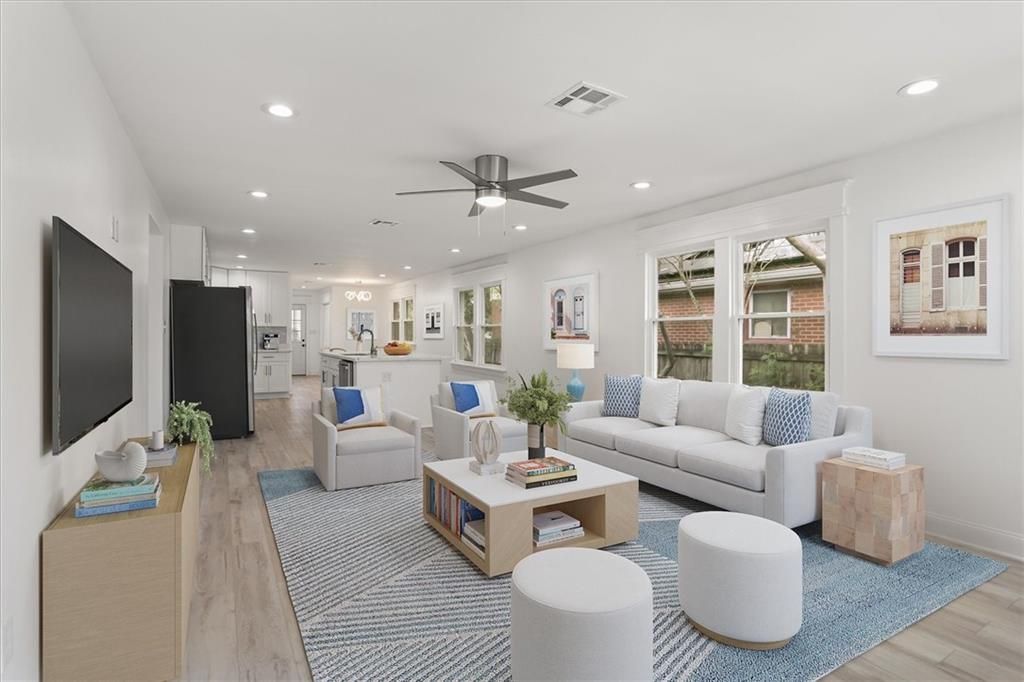 Stunning, brand new renovation located in the heart of the popular St. Claude/Bywater community. This thoughtfully designed home blends modern luxury with neighborhood charm, featuring a newer roof, updated windows, a completely new kitchen with stainless steel appliances, quartz countertops, kitchen island and new HVAC. Original painted hardwood floors in bedrooms and lots windows and natural light throughout. The spacious primary suite is a true retreat, featuring a spa-like ensuite bath with large walk-in shower and luxurious soaking tub. The huge, fully fenced-in backyard is a clean slate with plenty of room for gardening, growing vegetables or outdoor entertaining. This home also features gated off-street parking for multiple vehicles. Relax on the cozy front porch and watch the neighborhood chickens walk by. Great location within walking distance to coffee shops and restaurants and just a short distance from the French Quarter and popular Crescent Park in the Bywater. Must see!