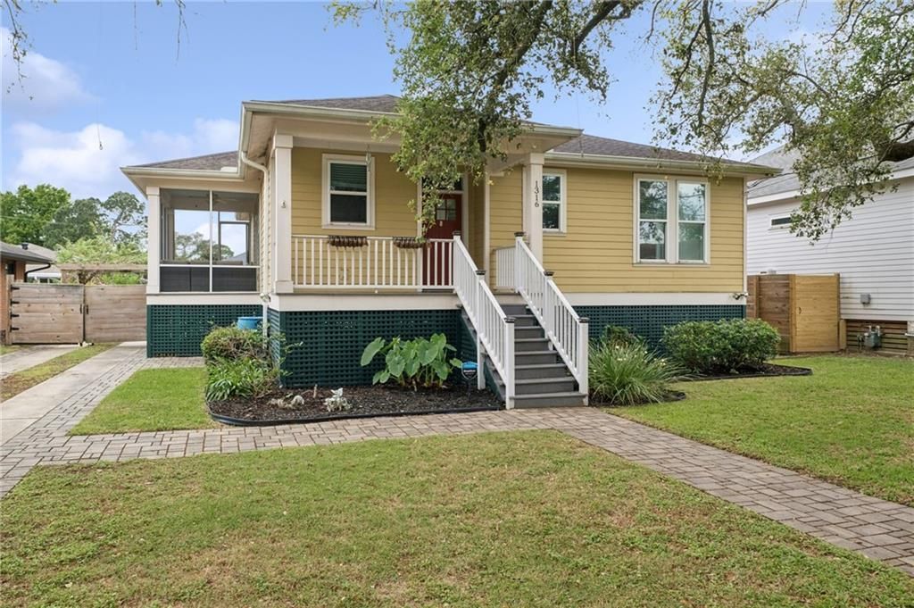Adorable, newer-construction cottage on a large lot in the desirable Oak Park/Filmore area of Gentilly! Nestled on a quiet, tree-lined street just minutes from Bayou St. John and City Park, this charming 3 bedroom, 2 bath home blends modern efficiency with classic New Orleans appeal. Enjoy relaxing mornings or effortless entertaining on the spacious screened-in porch just off the open living and dining areas. Inside, you'll find hardwood floors, 9-ft ceilings, and a thoughtfully designed layout filled with natural light. The kitchen is fully equipped with granite countertops, solid wood cabinetry, stainless steel appliances, and ample storage. The primary suite features tray ceilings and a generous built-in closet, while additional bedrooms offer flexibility for guests, work-from-home, or hobbies. Built with energy efficiency in mind, this home includes solar panels, spray foam insulation, and is elevated above base flood elevation?helping keep insurance and utility costs low. A security system and included washer/dryer add convenience. Step outside to a large backyard retreat complete with pergola, raised garden beds, and a storage shed?plus plenty of room to play or entertain. Beautiful landscaping and a welcoming front porch complete the package. A rare opportunity to own a move-in-ready, energy-efficient home in a fantastic location?don't miss it!