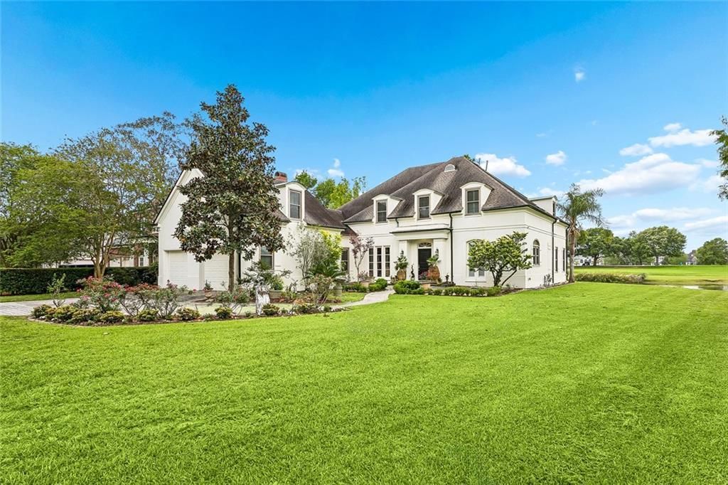 Situated on an oversized lot along the highly sought-after 2nd hole of the English Turn Golf Course, this exceptional home captures stunning water views and unforgettable sunsets in a peaceful, private setting. Inside, classic elegance meets modern design, with soaring ceilings, expansive windows, and abundant natural light highlighting the home's inviting interiors. Rich wood flooring adds warmth and timeless character throughout. The heart of the home is a beautifully designed Italian Poliform kitchen. This innovative 3 modular sections adapts to your lifestyle. It can be reconfigured to create a stunning island centerpiece. Carrara Marble Countertop with 38" Oversized Depth, Wolf Oven, Sub-zero Fridge & Wine Cooler, beverage drawers, and a dual-fuel range. Honed Carrara marble countertops and newly installed 8" wide Modin luxury vinyl plank flooring (2024) complete the refined, modern aesthetic. The primary suite on main floor offers a quiet retreat with custom drapery and elegant travertine flooring. The spa-like en suite bath is truly striking, featuring floor-to-ceiling Italian Bisazza glass mosaic tile and a classic clawfoot soaking tub designed for relaxation. Upstairs, three generously sized bedrooms provide comfort and flexibility, including one private en suite and a Jack-and-Jill layout connecting the additional flex rooms?ideal for family or guests. Additional architectural details, such as copper gutters and downspouts, enhance the home's enduring appeal. Set on one of the most desirable and private lots in English Turn, the property also includes half of the adjacent lot, preserving the view and preventing future development. Enjoy uninterrupted golf course and water views?an exceptional opportunity to own a truly special home. Excluded from the sale: 2 Chandeliers ( Foyer and Living area) and 2 Sconces on Stair Wall