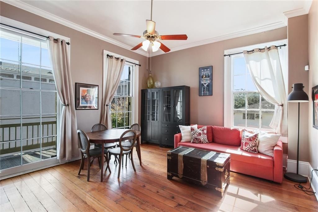 Enjoy sunsets and parades from your corner balcony in this Fully Furnished 2 bed, 2 bath condo. The unit is on the second and third floor of an 8 unit condo building just off the St. Charles Streetcar line! Includes updated kitchen & baths, a grand staircase, hardwood floors, beautiful barn door and an abundance of storage. Kitchen includes stainless appliances and wine cooler! Owner pays Water, Entergy & Internet. No pets. Available April 1st.