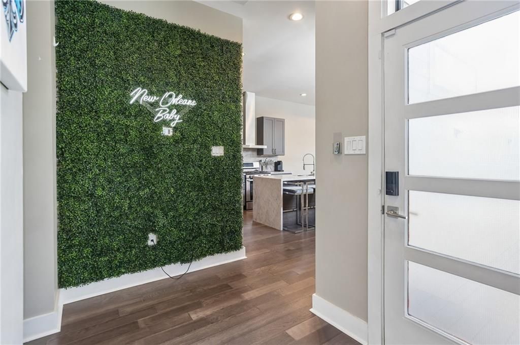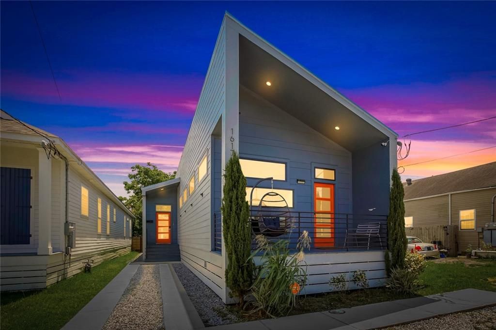 Built in 2019 on a raised foundation, this 1,897 sq ft contemporary home on Arts Street features clean lines, a metal roof, and HardiPlank siding. The open-concept living and dining area flows into a chef's kitchen with Carrara marble countertops, waterfall island, stainless steel appliances, and a full wall of cabinetry. The primary suite includes a walk-in closet, oversized marble shower, and soaking tub. Two additional bedrooms share a Jack and Jill bath. Full appliance package, two covered porches, fenced rear yard with hot tub, and two off-street parking spaces. Minutes from the French Quarter, Marigny, and Bywater.
