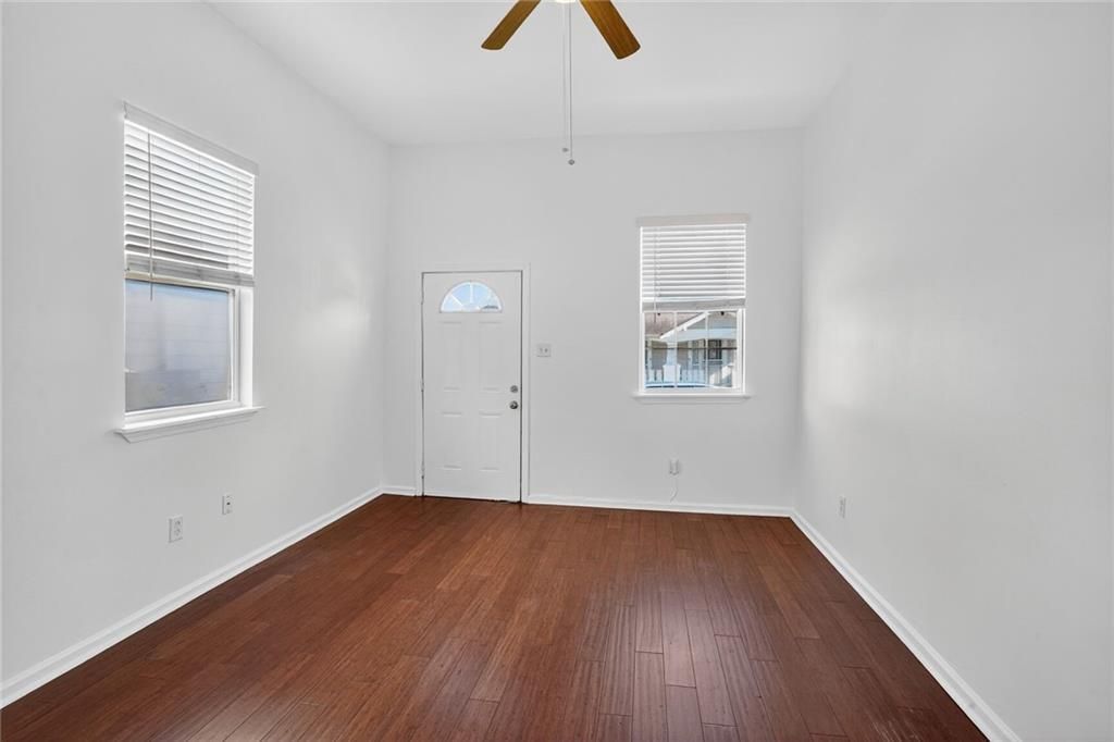 2 bedrooms and 1 bath in a classic shotgun layout with high ceilings, wood floors, ceiling fans, and central HVAC. Kitchen feature tile floors, stainless steel appliances, and large sinks. Sun-filled rooms throughout, with in-unit washer & dryer. Shared fenced backyard shaded by a beautiful tree?perfect for outdoor entertaining. Pets accepted on case by case basis. Property is availble now.