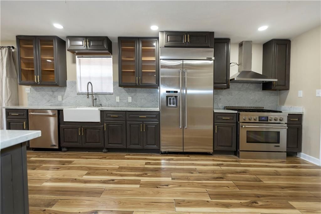Chef's dream luxury kitchen takes center stage in this beautiful renovated 3-bedroom, 2-bathroom home, featuring top-of-the-line appliances, an impressive 8-foot island, and an open floor plan accented by stunning restored beams. Beautiful home for everday living and entertaining, the home also includes a bright sunroom that adds versatile living space, along with large closets. Included washer/dryer. Step outside to a private backyard complete with a patio and storage shed. Available on a 1-year lease, with pets considered on case-by-case basis.