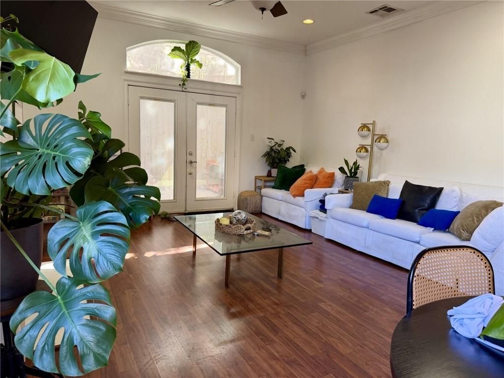 This 2-bedroom, 2.5-bath home features an open floor plan with high ceilings and spacious bedrooms. The property includes all appliances, a master bedroom with a private balcony, a jacuzzi tub, and a charming private backyard. Additionally, the townhome is conveniently located within walking distance to various restaurants. NO HOA FEE!!!