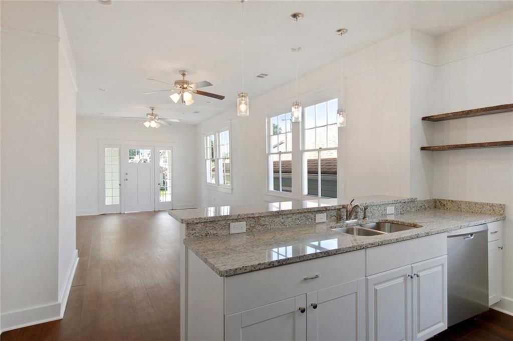 Spacious Gentilly Ridge unit available June 1st! This 3 bedroom 2 bath raised basement features beautiful modern floors up and stained concrete down. Large open floor plan for living area includes modern kitchen equipped with stainless appliances and granite counters, large living room and separate dining room. Upstairs primary bedroom has closet plus bonus room great for office, storage or walk in closet. Downstairs features 2 large bedrooms plus second living room. Downstairs entrance off downstairs den makes this a great unit for roommates! No housing vouchers accepted.