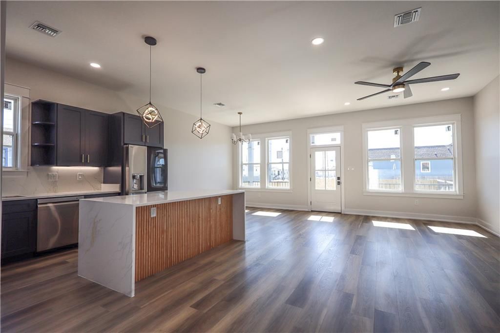 Stunning new-construction raised home blending classic New Orleans charm with modern design. This 3 bedroom/2.5 bath home is MOVE IN ready and features an open, light-filled layout, modern kitchen with waterfall-edge island, stainless steel appliances, and under-cabinet lighting. Raised foundation with insulated undercroft for energy efficiency and a certified FORTIFIED ROOF for durability, peace of mind and lower insurance costs. Spacious backyard with porch area, driveway parking, functional floor plan, and primary suite with walk-in shower and tub. Corner lot, minutes to I-10, dining, shopping, and entertainment.