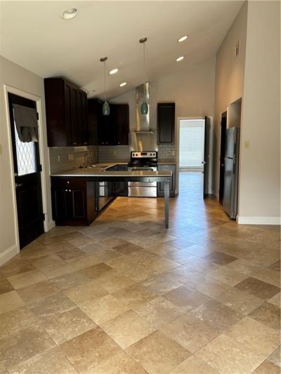 Move in Ready. Washer/dryer Hookups Are in Shed off Rear Patio. & Den. Surrounded by Beautiful Homes Blocks From Groceries, Workout Centers, Schools, Shopping and Interstate. Easy Access to Lakefront, Universities, Suburbia, Downtown, Uptown, CBD, Airport, and approximately an hour to Baton Rouge. Nice renovation offers low maintenance travertine floors throughout, no carpet. Granite counters, high end fixtures, wonderful light flow, private yard and off street parking. Spacious closets. Supra Lockbox is down driveway hanging on faucet.