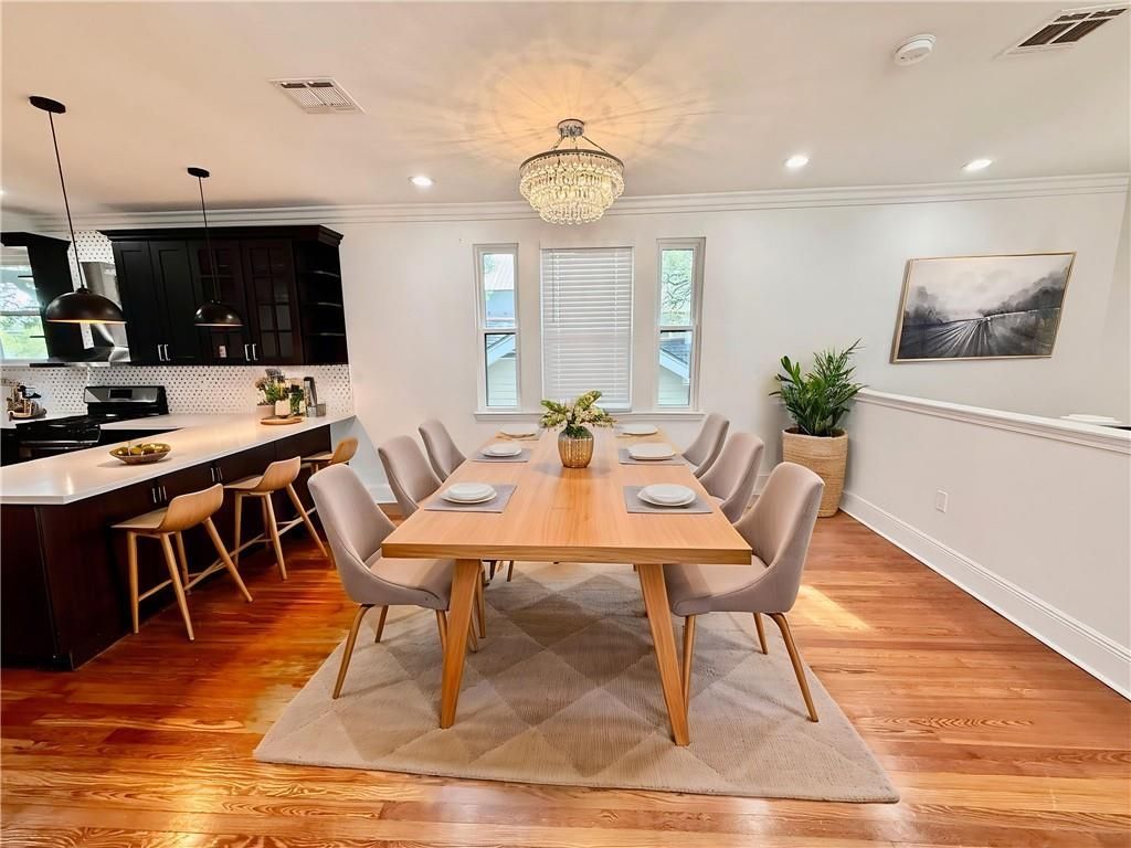 This elegant Broadmoor Rental is where modern comfort meets classic charm Experience the perfect blend of historic Broadmoor character and contemporary luxury in this stunning, updated upstairs residence. Spanning approximately 1,550 square feet, this 3-bedroom, 2-bathroom home is flooded with natural light and features high-end finishes throughout. Key Features & Amenities Interior Highlights: Gorgeous Refinished Hardwood Floors: Warm, polished wood spans the entire living space. Gourmet Kitchen: Equipped with beautiful dark cabinetry, sleek quartz countertops, and a stylish tiled backsplash. Spacious Storage: Generous walk-in closets in the bedrooms. Modern Lighting:Statement fixtures, including an elegant crystal chandelier in the dining area. Included Appliances: Stainless steel refrigerator Gas range Dishwasher In-unit Washer & Dryer Energy Efficiency & Comfort: Central HVAC system Tankless water heater for endless hot water Spray foam insulation for superior climate control energy-efficient windows Outdoor Living & Parking Private Oasis: Enjoy a private, fully fenced-in backyard and a patio, perfect for relaxing or entertaining. Convenient Parking: Includes off-street parking for one vehicle in the driveway. Tenant Note:Lawn service is the responsibility of the tenant. This Broadmoor gem offers the space of a house with the convenience of a modern apartment. Don't miss the chance to live in a home where every detail?from the spray foam insulation to the quartz counters?has been meticulously updated.