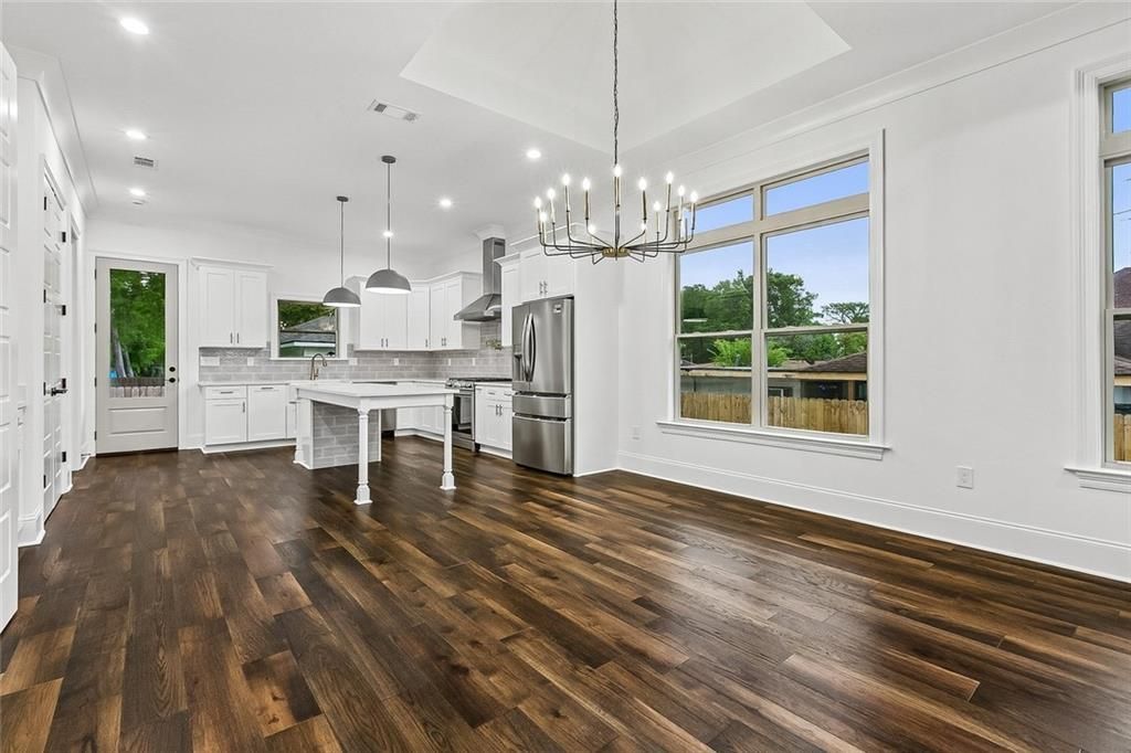 Beautiful new construction now available! Absolutely stunning new home featuring an open & spacious floor plan with large rooms, high tray ceilings, crown molding, beautiful trim work, modern fixtures/finishings, engineered wood floors, & plenty of natural light throughout, ample storage space, massive kitchen with stainless steel appliances, quartz counters, pantry, and a central island bar/counter overlooking the living & dining rooms, wine bar area, office desk/workspace, a huge primary suite with a beautiful spa-like bathroom featuring a luxurious soaking tub, double vanity, and large walk-in closet, and much more. Large, low maintenance, lot with plenty of curb appeal, spacious covered patio overlooking the private rear yard with ample landscaping opportunities in a great neighborhood with quick access to countless surrounding amenities such as Pontchartrain Park, lakefront recreation areas including the Lakefront Arena, the Lakefront Airport, & several schools including UNO & Dillard.