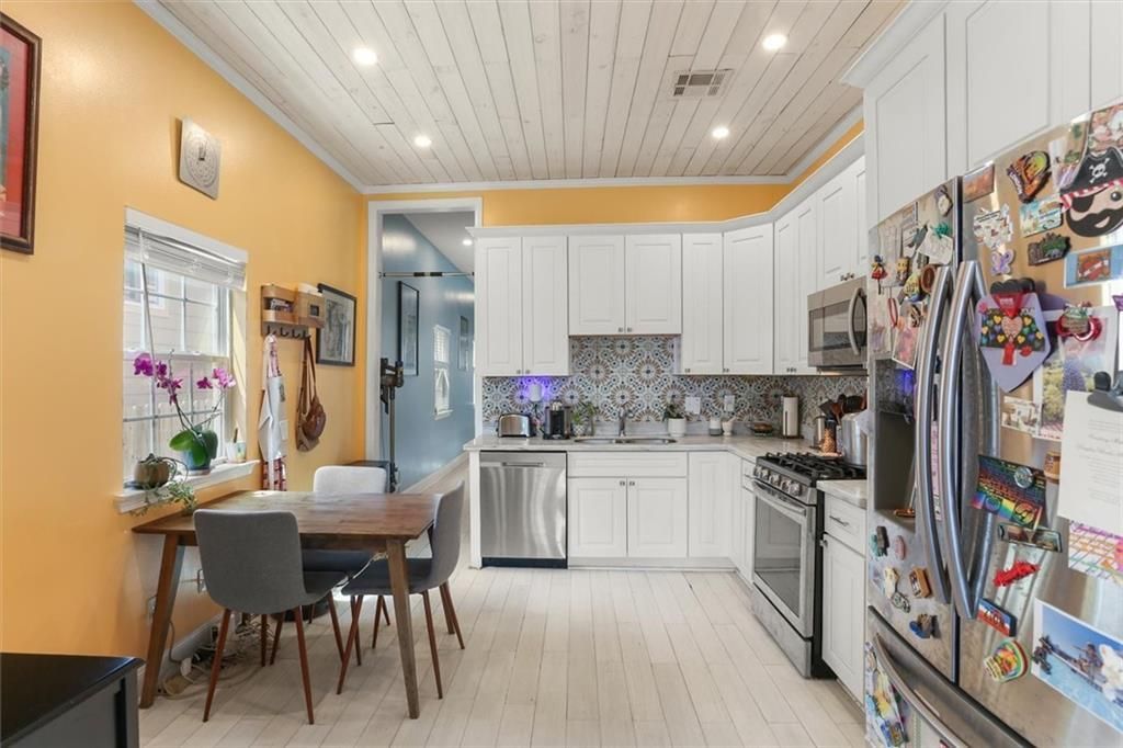 Adorable side-hall cottage with three full bedrooms including a primary suite, as well as an office space. Living and kitchen have soaring ceilings. Low maintenance gated side yard with room for bicycles and a storage shed that remains with the property. Renovation was done in 2019. X flood zone. Don't miss it!