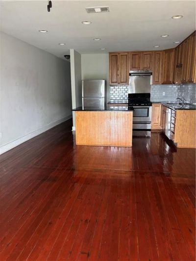 Fantastic front porch opens to beautiful renovation positioning kitchen open to living room separated by the breakfast bar. side hall, beautiful hardwood floors, granite countertops, claw foot tub, renovated bath & Kitchen. Separate private yard and driveway offers offstreet parking. Garage is not included.