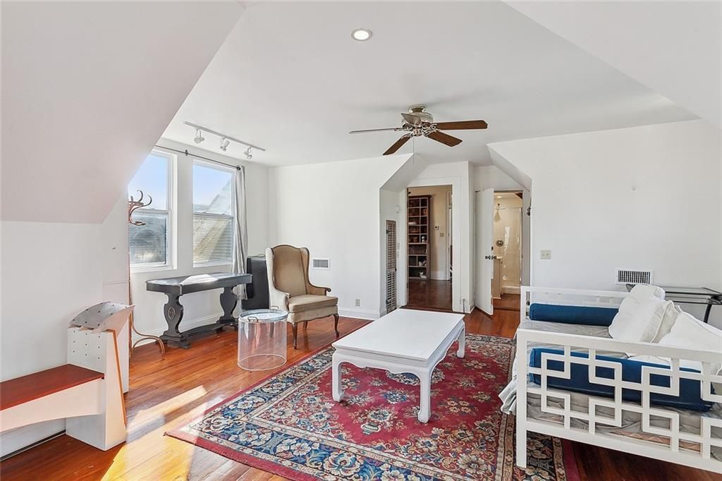 AVAILABLE JUNE 1-- Furnished loft-like apartment on 3rd floor of restored Victorian home at corner of St. Charles Ave. & Audubon Park, located via private entrance off 2nd floor balcony. Hardwood floors, ceiling fans, recessed lights, huge windows overlook neighboring rooftops & gardens. Comes with the following furnishings: bed, desk, lamps, bookcases, etc. Kitchen & common lounge area are shared with another 1bedroom apartment--this unit is also available! Laundry onsite, Central A/C, 24-hour security patrol, UTILITIES PAID (water, city services, wifi, cable) except electric. No pets, no smoking -- no exceptions.