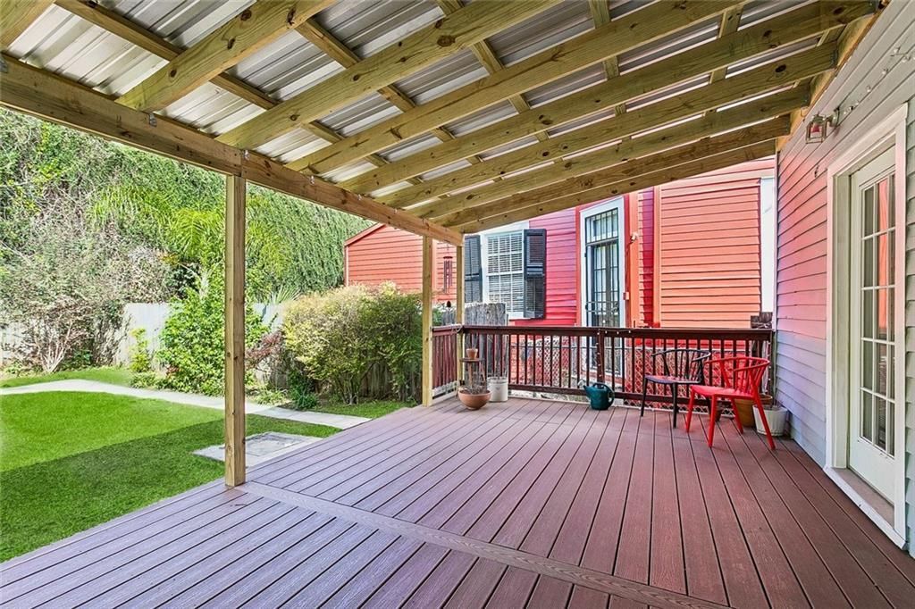 Historic Bywater Cottage Updated with Flexible Floorplan! 706 Side Larger One Bedroom One Bath with Laundry, L-Shape Design (see Floorplan in Photos) with Direct Courtyard Access. 708 Side One Bedroom with Laundry, Access between Both Units to Easily Combine to Single-Family or Retain as Guest/Rentable Space. New Rear Decking, Large Rear Courtyard, All Well-Located at Desire and Royal, Behind Markey Park, One Block to Crescent Park, Mississippi River, Multiple Restaurants, Shopping, Well-Established Neighborhood -- Welcome to 706-708 Desire Street in the Heart of Historic Bywater! 706 Leased $1,947 through June 2026, 708 Leased $1,500 through April 2026 (for third party marketing sites, backyard green added to enhance the area)