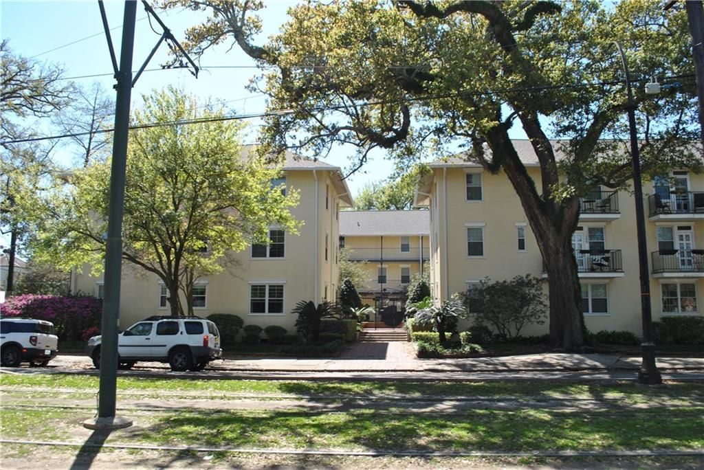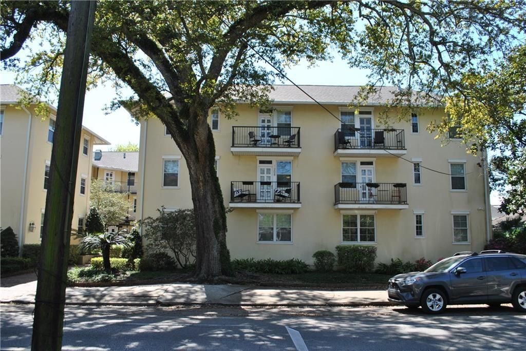 Perfectly located 3rd floor unit on St. Charles Ave. Close proximity to Tulane & Loyola Universities. Spacious Den with access to a private balcony. Kitchen has granite counter tops & ample cabinets, refrigerator, microwave, dishwasher, electric range/oven. 2 bedrooms/ 1 full bath with interior privacy shutters. In unit washer/dryer. One assigned parking spot. Complex pool, outdoor sitting area and elevator. Unit has a 4th floor unconditioned storage area.