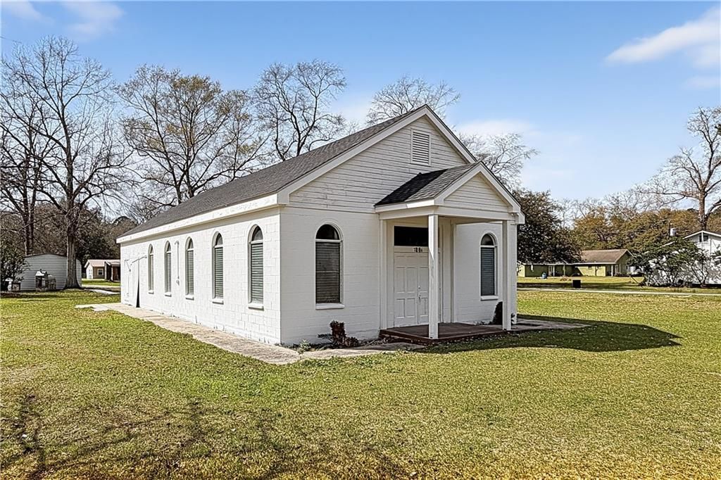 Former chapel building with soaring wood cathedral ceilings in the heart of Talisheek?now priced to move. This solid cinderblock structure offers approximately 1,650 sq ft of open interior space with expansive wood cathedral ceilings and arched windows that give the property its unique character. Recent improvements (2025) include a new roof, electrical updates, septic lift station installation, and polished concrete flooring. Zoned NC-2 Neighborhood Commercial, the interior remains largely open, providing a blank canvas for a variety of uses such as residential conversion, studio, workshop, retail, or small business space. The 1.55-acre property features frontage on three streets and sits directly across from Dollar General, offering strong visibility and accessibility. Also included: a 40'x22' storage container/workstation with electrical service and lean-to coverage, along with an 18'x20' storage building. A flexible, value-add opportunity for investors or owner-users looking to bring their vision to life. Camper on property is not included in the sale.