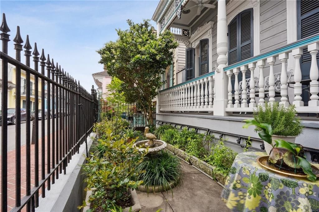 ST PETER HAS THE GATES OPEN! Located in the heart of the French Quarter, this charming historic home blends classic elegance and New Orleans charm. Watch the second line parades go by from your front porch as your home proudly displays its sunburst panel work, stained glass doors, decorative cornices, turned wood balustrades, period brackets and period architectural details. Step inside to discover 12'6 ceilings, original pine floors, and intricate molding throughout. The inviting dining room features a beautiful fireplace, built-in shelving, and decorative moldings, while the kitchen is a chef's dream with a 48-inch DCS range, Subzero side-by-side refrigerator, and a center island with a bar sink?great spot for showcasing your culinary talents. The cozy living room/parlor with a fireplace and built-in bookshelves seamlessly flows into another parlor through elegant pocket doors. The expansive primary suite features 16-foot ceilings, French doors leading to a private courtyard, and a luxurious en-suite bath with a Jacuzzi tub, separate shower, and gorgeous marble vanity. The guest bedroom on the first floor includes a period mantel and full bath, while a spiral staircase leads to a third bedroom and bath on the second level. Outside, a sweet courtyard with brick walls, planters, and an awning covered porch offers a serene retreat, just in time for Mint Juleps. This rare gem offers historic charm in one of New Orleans' most desirable locations where restaurants, live entertainment, art, culture and more are just outside your door. Schedule your tour today!