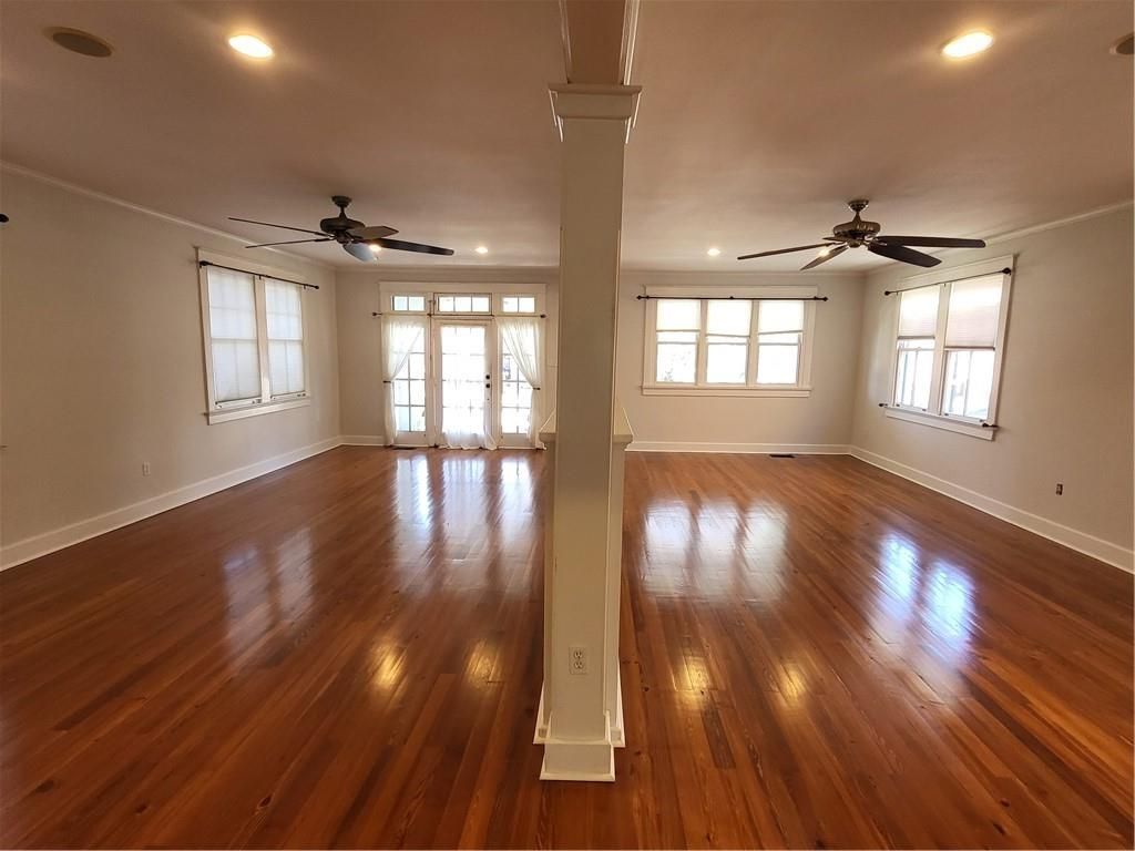 Beautiful home located in the Parkview Neighborhood of Mid-City, featuring Five-bedrooms and, three full bathrooms. This 1925-era Arts and Crafts home with Mediterranean architectural influences was a former two-story duplex, converted into a single family home, located two blocks from Bayou St John. It is walkable to City Park, North Carrollton Avenue dining and shopping, the Canal Streetcar, Jazz Fest and the Endymion parade. The kitchen is replete with maple shaker kitchen cabinets, a 36 inch Viking gas range and vent hood, GE Profile French-Door refrigerator and a Samsung dishwasher. The living area consists of four parlors that are versatile and capable for entertaining. Upstairs features a primary bedroom with bath and walk-in closet, in well as four bedrooms and an adjacent bathroom. Upstairs also features a study / office area with built-in shelving. Two of the bedrooms open to a large gallery overlooking Taft Place. It Also features original built-in cabinetry, doors and windows, antique pine hardwood floors, casings and moldings. The owners have replaced the entire first floor with new pine floorboards. The home also features an in-ground swimming pool and spa that can be heated in cooler months. The double driveways allow for off-street parking of multiple vehicles. The front porch has attractive gas lanterns and the front landscaping features large Crepe Myrtle Trees. The house was painted in 2023 and the roof was also replaced in the same year. The first-floor AC system was replaced in 2024 and the backyard features a new wooden fence. The annual termite treatment plan is transferable to the new owner. The downstairs parlors have been freshly painted, along with the front porch. Storage sheds are included with the property. The physical street (800 Block of Taft Place) was completely reconstructed in 2019 and was completed in concrete. The street is in excellent condition and retains it vintage street lamps and granite curbs.
