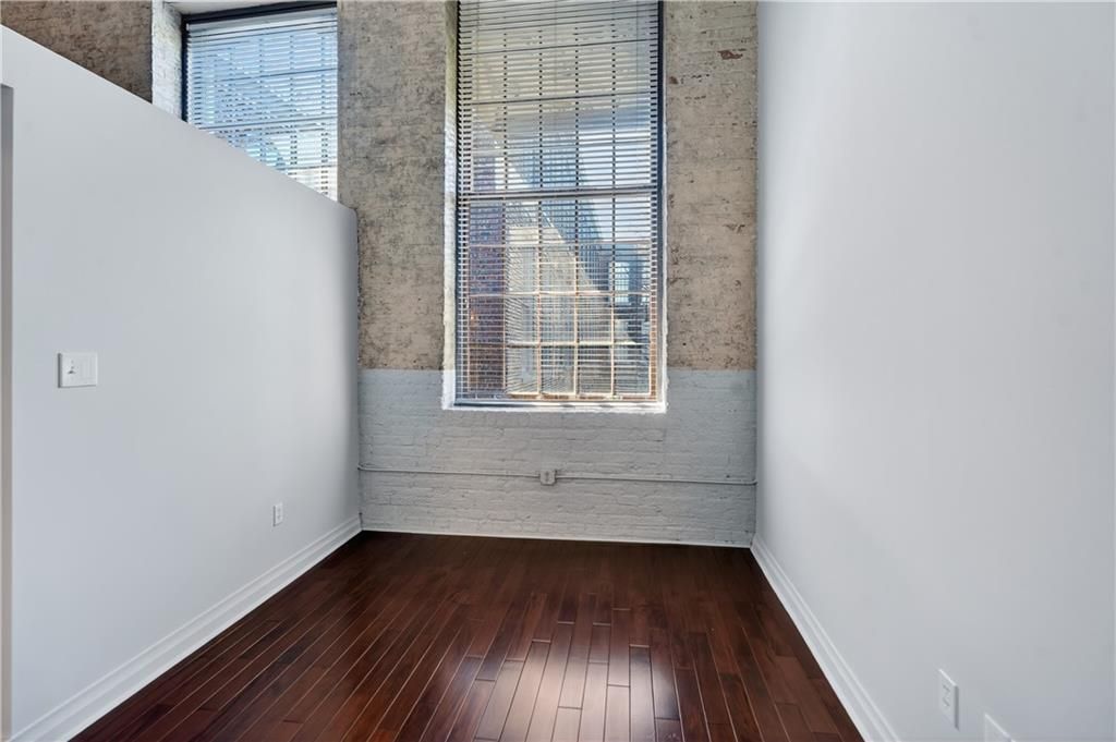 Sunlight pours through large windows overlooking the courtyard, creating a bright yet serene atmosphere throughout this beautifully updated, oversized unit. Rich hardwood floors anchor the downstairs living space, while gorgeous exposed brick and striking cypress pillars add warmth and architectural character. The elegant kitchen boasts marble countertops, a stylish backsplash, and crisp white cabinetry with ample storage space. A barn door adds a touch of rustic charm while providing privacy to the downstairs bedroom; and the convenience of an in-unit washer and dryer enhances everyday living. Upstairs, the spacious primary bedroom features brand-new carpet, while the entire interior has been freshly painted for a clean, move-in-ready feel. Enjoy all the sought-after Cotton Mill amenities, including a fitness center, pool, party room, rooftop space,library,yoga and ballet classes and a lush, beautifully maintained courtyard?a wonderful place for relaxing or entertaining.
